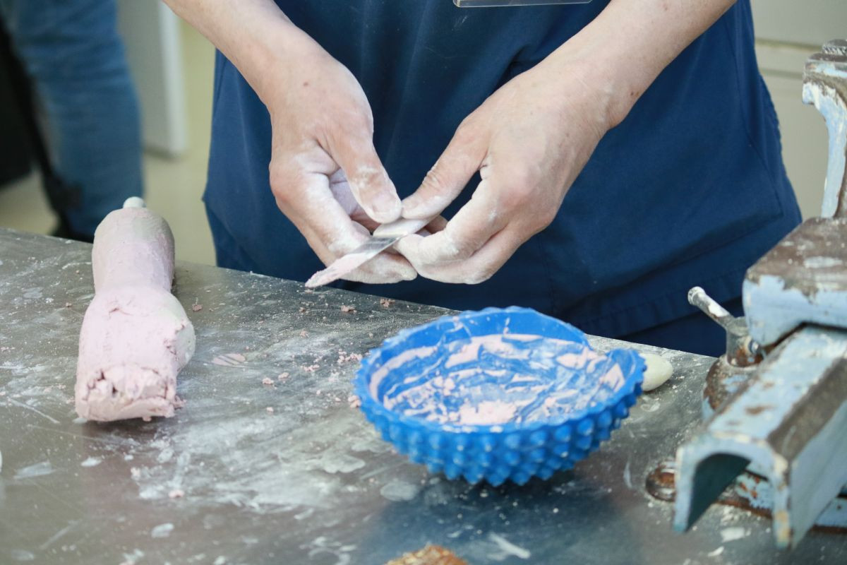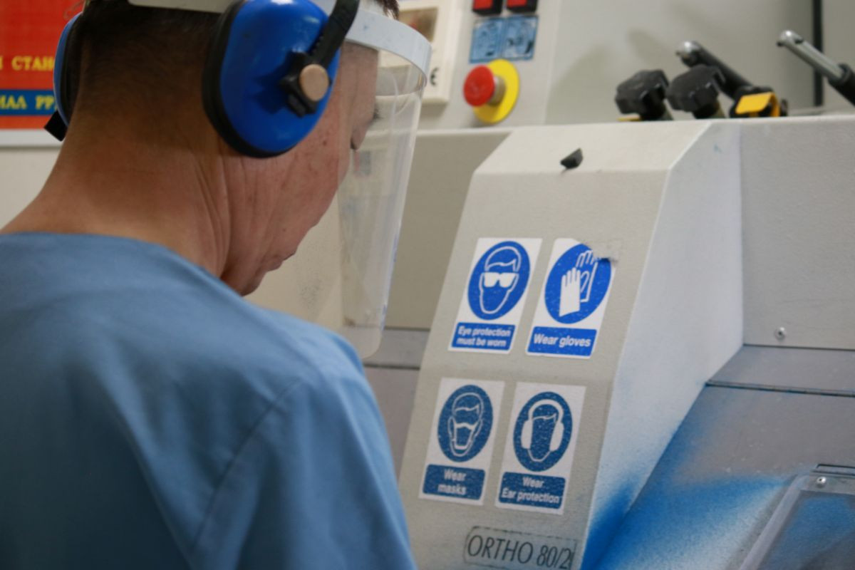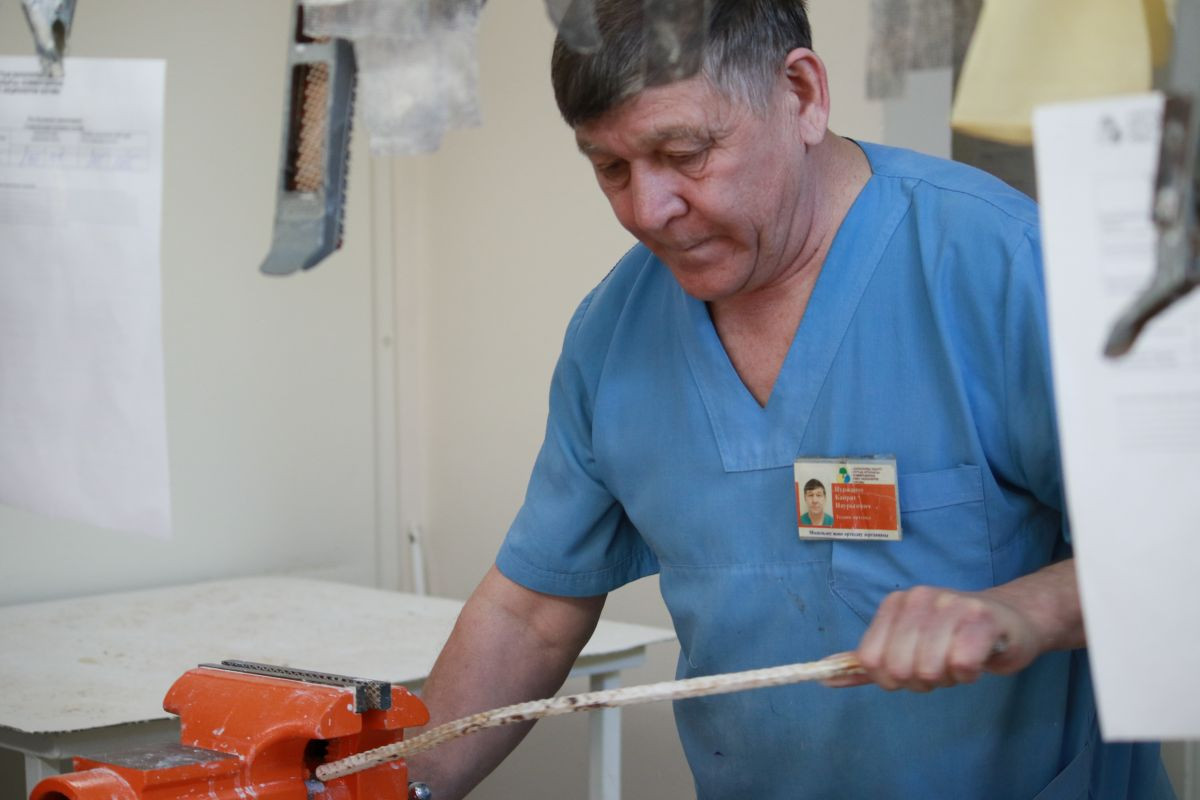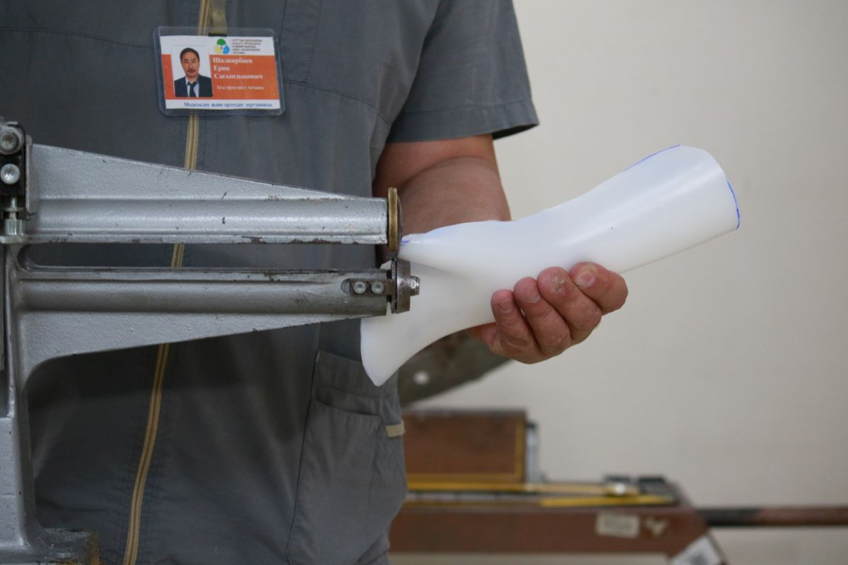 Техник-ортезист Ертөстік Бөлегенұлы құйылған бұйымды қалпына келтіріп кесіп, жөндейді екен. «Өлшеніп келген көлемде кесіп, айналасын тегістеп, реттеймін. Артынан белдігін тақтырып, толығымен дайын болғанда өткіземін», – деді балқыту бөлімінің маманы.