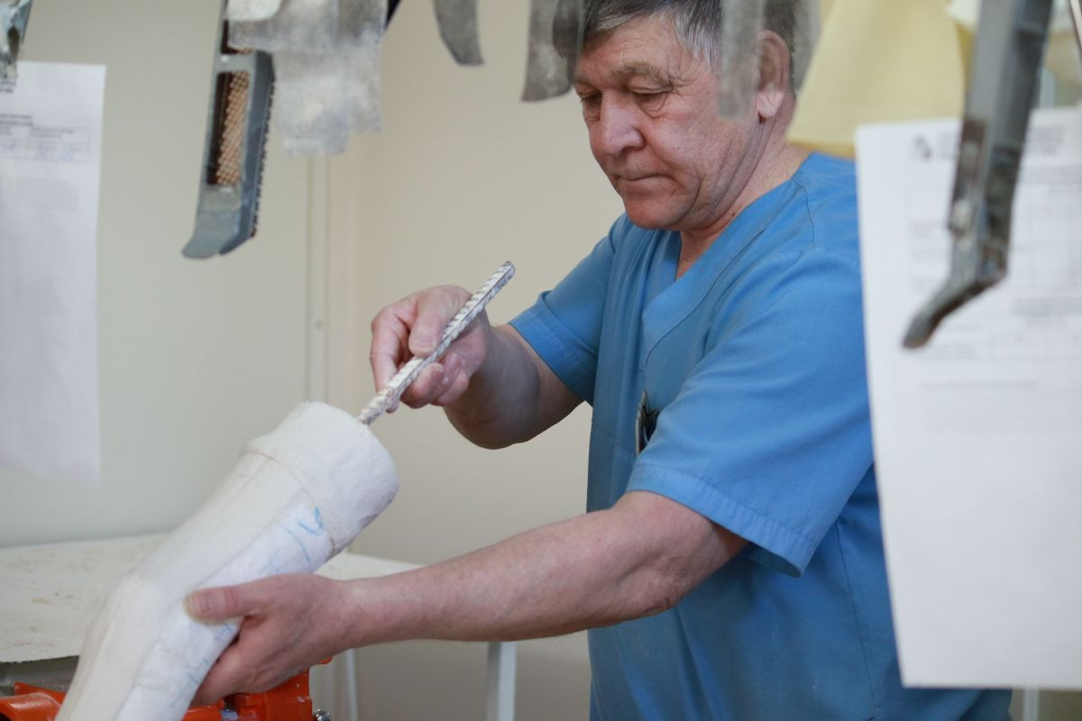 – Бүгінде осы жердің жұмысын бастан-аяқ бақылап, қадағалайтын өзім. Осында 2007 жылы орталық ашылған күннен, яки Модельдеу және ортездеу зертхана жұмысының басы-қасында болдым. Сол кезде бірінші қабылдаған адамымыз – 9-10 жастағы петропавлдық бала. Гипсті баланың аяғына орап істедік. Алғашқыда күніне 20-25 қана ортездік бұйым дайындалатын, – дейді ол.