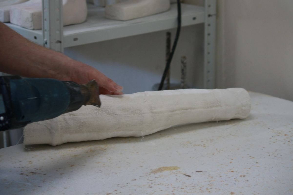 Пештің ыстығы 220-ға көтерілгенде табақша пластикті салып, 5-7 минут қыздырады. Содан матамен қапталған гипсті ерітілген пластикпен орап, аяқтың немесе қолдың қалыбын жасап, артығы кеседі. Артынан вакуум арқылы сорып, пішінін қалпына келтіреді.
