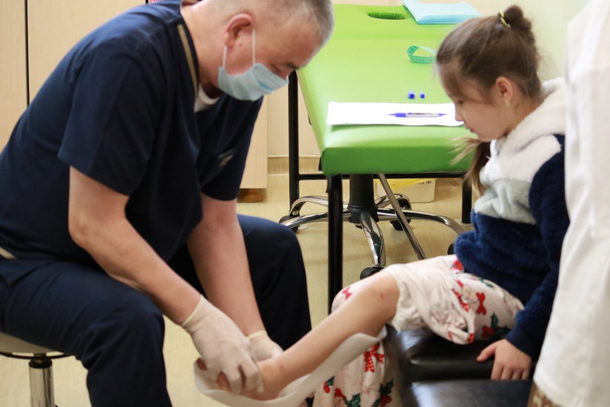 Ұлттық балаларды оңалту орталығындағы ортез шеберханасында анасының қолынан ұстап отырған кішкене қызды көрдік. Есімі – Кәусар, 7 жаста. Дәрігер оның аяғына ортез кигізіп, өлшемін алып жатыр. Ол ортезді бірінші рет қолданғалы тұр. Содан болар дәрігердің әрекетін түсінбей, таңырқай қарап отырды.