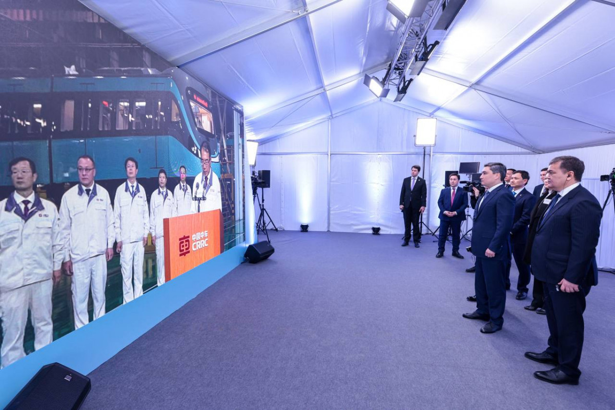 Депо алаңында LRT-ға арналған жылжымалы құрамды өндіруші CRRC Tangshan Co.,Ltd. зауытымен бейнебайланыс арқылы тікелей қосылым болды. Премьер-Министрге LRT бойымен жолаушыларды тасымалдайтын локомотивтердің ерекшеліктері баяндалды. Барлығы 650 орынға есептелген 19 төрт секциялы құрам жұмыс істейтін болады.