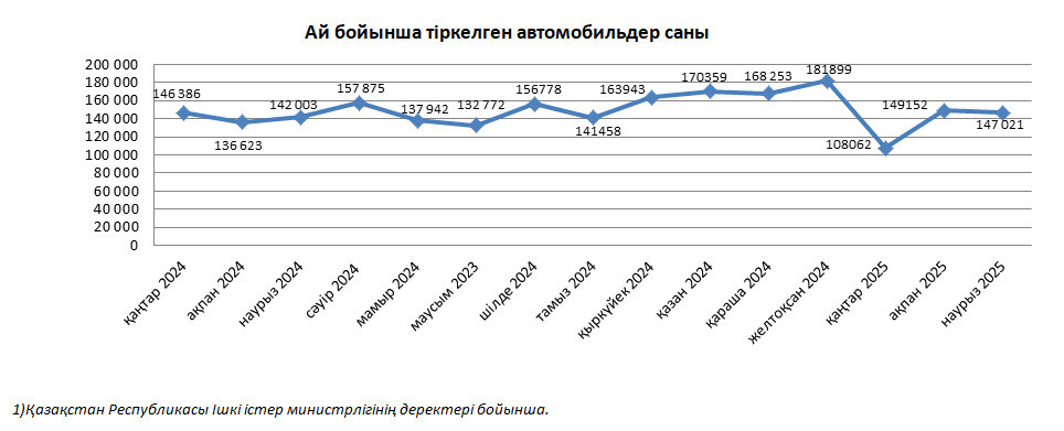 Ұлттық статистика бюросының мәліметінше, 2025 жылғы наурызда 147 мың бірлік автокөлік құралы есепке қойылған, бұл көрсеткіш өткен жылдың сәйкес кезеңімен салыстырғанда 3,5% артық, – деп хабарлайды Аikyn.kz.