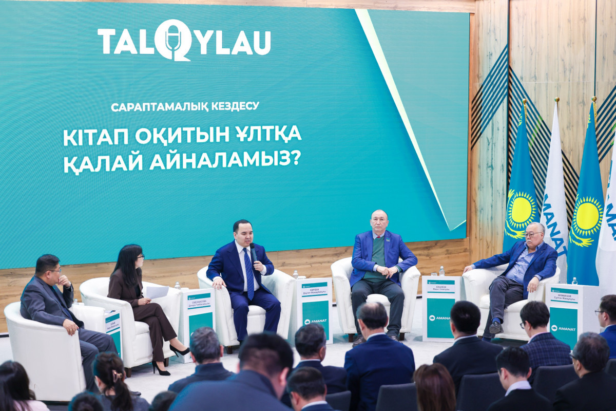 «Озық ойлы ұлт болудың ең төте жолы – кітап оқу». Мемлекет басшысы Қасым-Жомарт Тоқаевтың осы сөзі «AMANAT» партиясының Қоғамдық саясат институты қолға алған «TALQYLAU» диалог алаңындағы кезекті отырыстың өзегіне айналды. Ұлттық кітап күніне орайластырылған жиынға Мәжіліс депутаттары, мемлекеттік органдардың, баспа ісінің, кітапханалардың өкілдері, сондай-ақ танымал авторлар мен зерттеушілер қатысты.