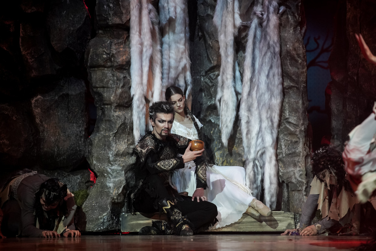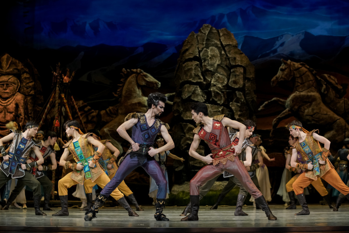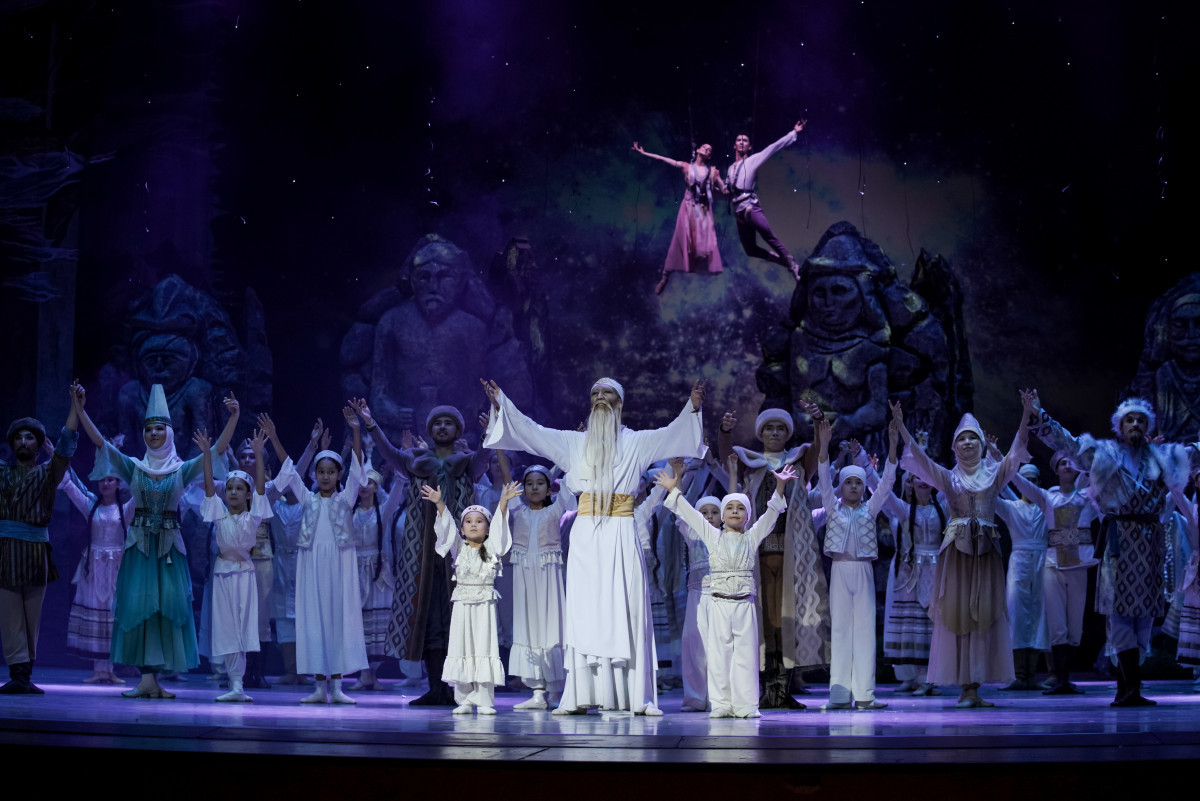 Балетті сахналауда заманауи әдіс-тәсілдер қолданылды. Оқиға желісі бойынша шиеленіске толы сахналық трюктер көрерменді еріксіз сол заманға жетелеп алып кетеді. Кейіпкерлердің жан тебіренісі, қуаныш мен қайғысы көрерменді бейжай қалдырмайды. Басты ерекшелігі сахнада көшпелі елдің мәдениеті, тұрмысы әдемі бейнеленген. Аңыз-әпсана тылсым күштің ажырамас бөлігі екенін бидің тілімен жеткізеді.