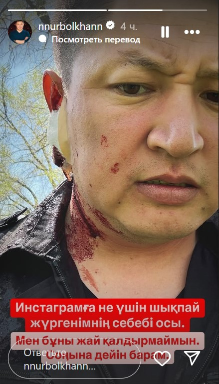 Әзілкеш Нұрболхан Шарапов Instagram парақшасында қан-жоса болған суретін жариялады, – деп жазды Aikyn.kz.