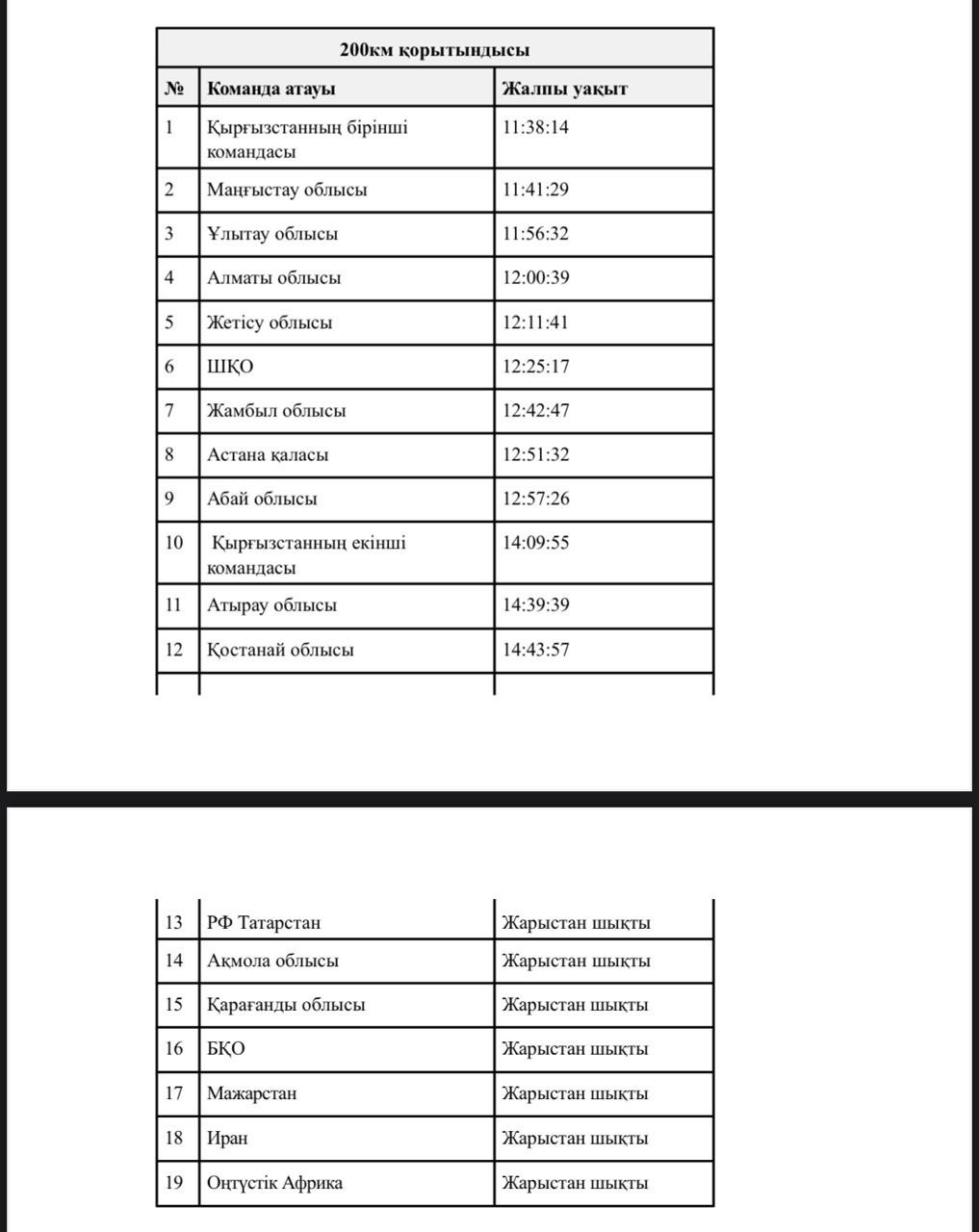 Екінші кезеңнің қорытындысы бойынша, Маңғыстау облысының командасы жеңімпаз атанды. Қырғызстанның бірінші командасы мəре сызығына екінші болып жетсе, Алматы облысының командасы үштікті түйіндеді.