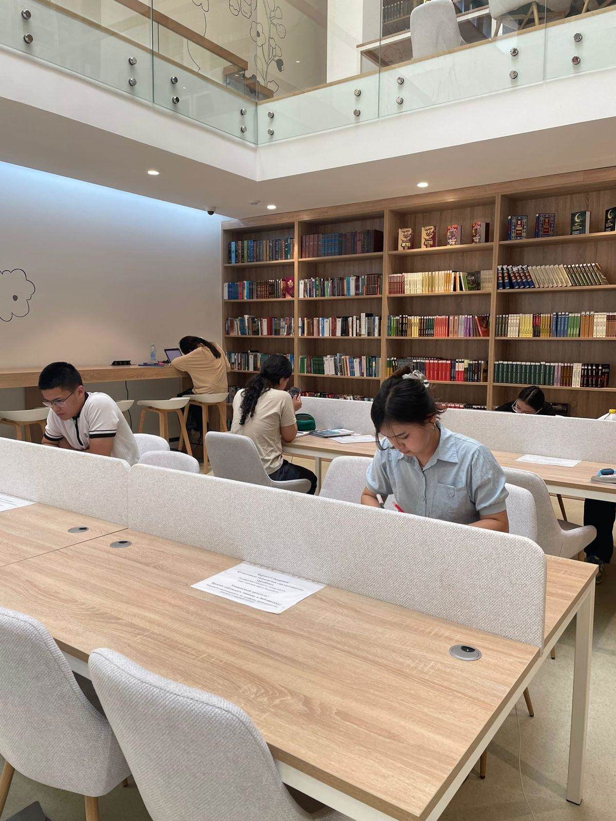 Әлеуметтік желіден көріп, біз де бардық сол кітапханаға. Кітапқа үңілгендер де, ғимараттың құрылысына таңданып жүргендер де көп. Жаңа кітапхананың көркі көз тартады. Стилі де бөлек, кең әрі заманауи үлгіде салынған. Бізді қарсы алған кітапхана қызметкері Ұлбибі Мұстапаева, ең алдымен, сөрелерді толтырған кітаптар туралы айтып берді. Айтуынша, мұнда 20 мыңнан астам кітап бар, оның 6 мыңға жуығы – балалар әдебиеті. Облыстық және жергілікті бюджеттің тұрақты қаржыландыруымен оқырманның сұранысындағы кітаптар сатып алынады. Мұндай жұмыстарды кітапхананың жинақтау-өңдеу бөлімінің мамандары жүзеге асырады. Кітапхана директоры Сымбат Бауыржанқызының айтуынша, оқырман сұранысындағы кітаптар арнайы сатып алынып отырады.