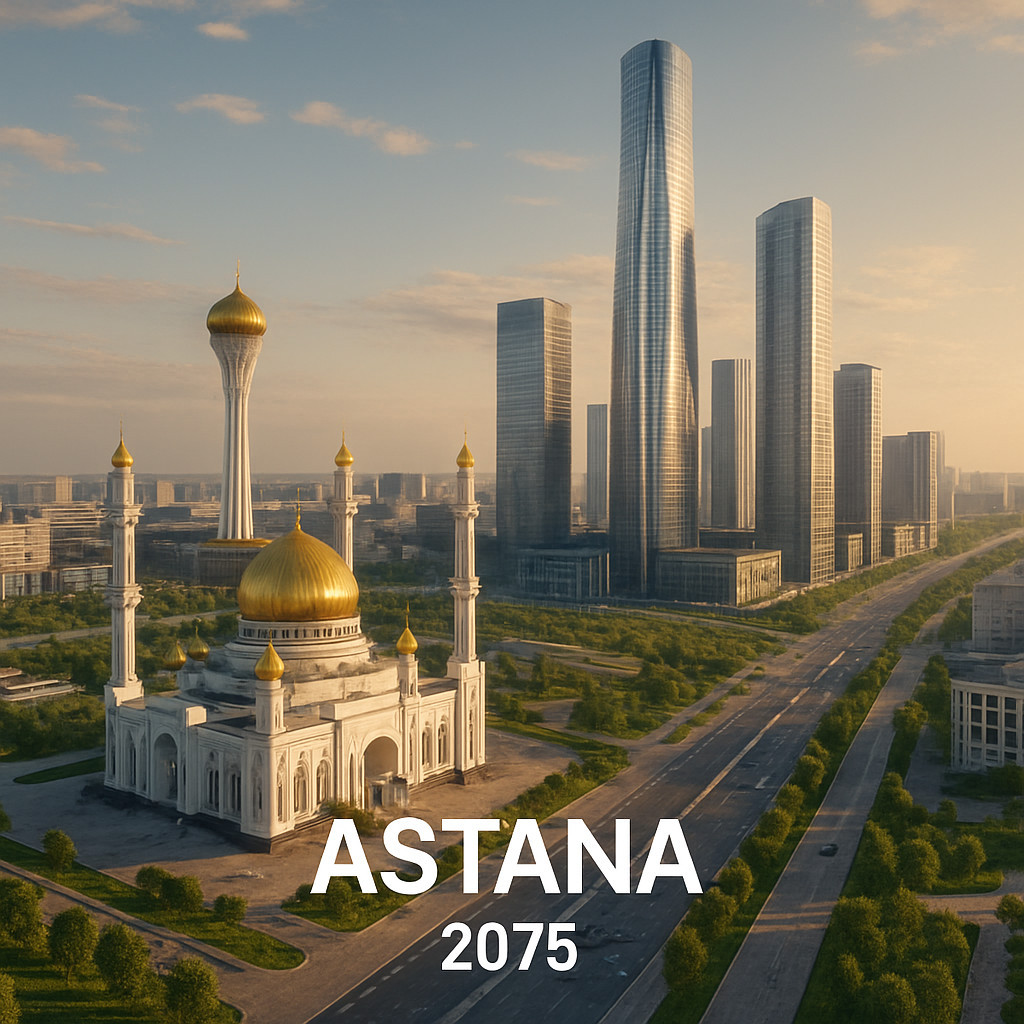«Елу жылда – ел жаңа» дейді қазақ. Осы уақыт ішінде Астана да танымастай өзгереді. Біз бұл болашақ көріністі ChatGPT-ден сұрап көрдік, ол 2075 жылғы Астананың осындай шынайы және мүмкін болар келбетін фото арқылы ұсынды.