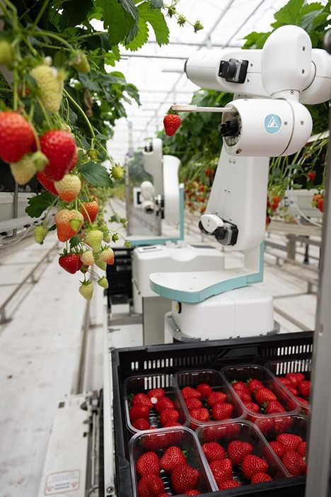 Құлпынай пісе бастаған кезде оны жинаумен 16 роботты қол айналысады. Олар әрбір жидекті абайлап үзіп алуға бейімделген. Джеймс Дайсонның өзі атап өткендей, роботтар бар болғаны бір ай ішінде 200 000 құлпынай жидесін жинаған.