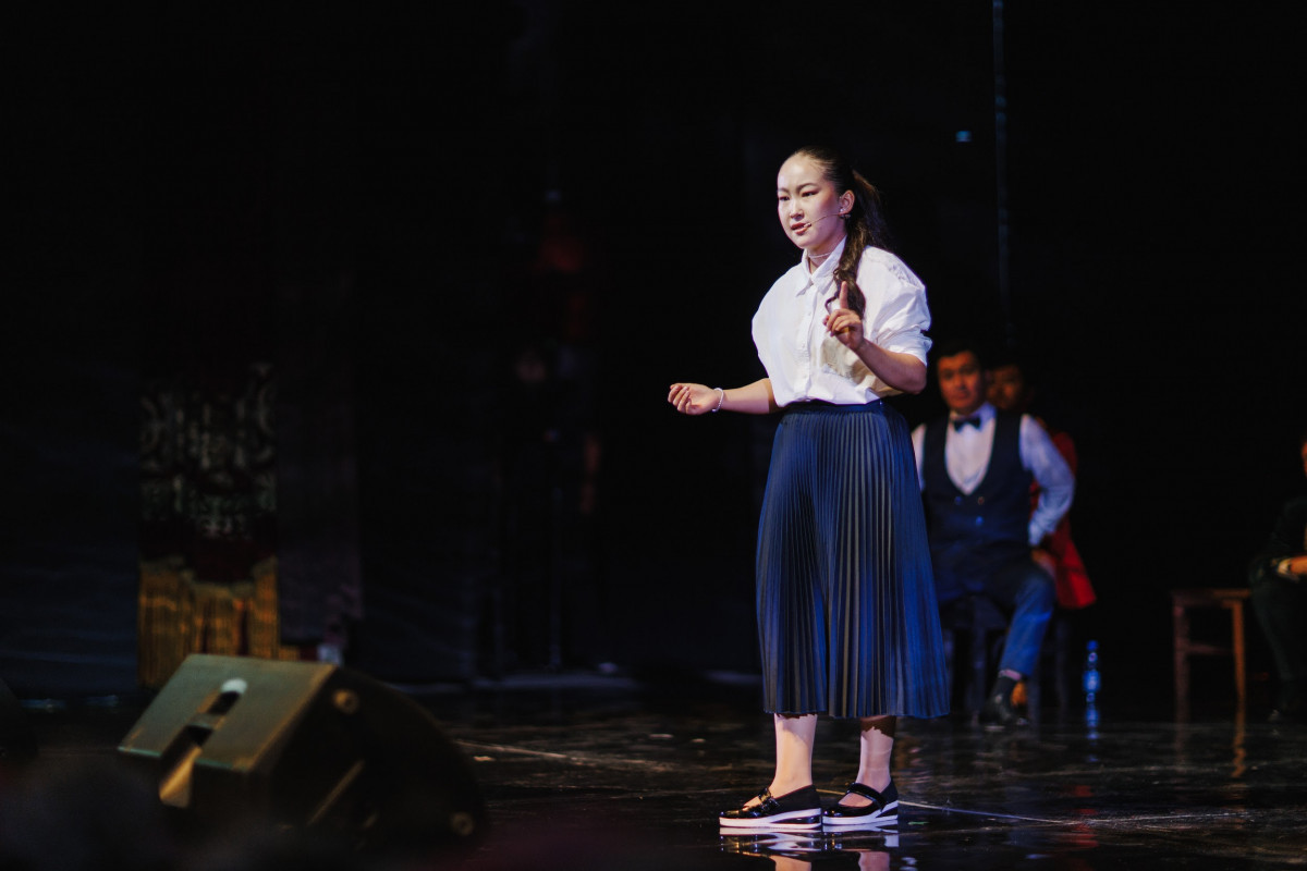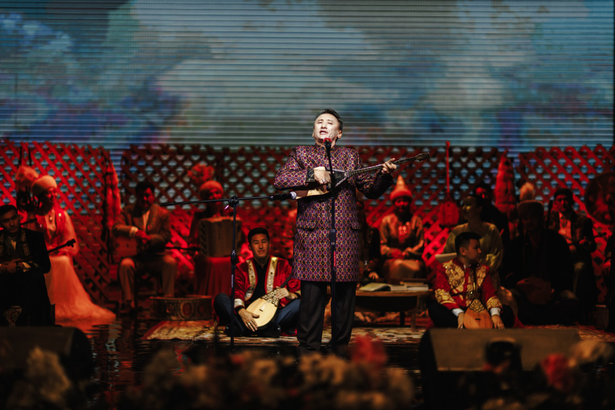 Алдымен сахна пердесі жабық тұрды. Залда тыныштық орнады. Бір мезетте «Көзімнің қарасы» әуені сыңғырлап шыға келді. Сахна шымылдығы ақырын ашыла бастады. Қазақы нақышқа толы сахна, жансыз әлем емес, тірі тынысы бар кеңістік. Сол сәтте ерекше бір құпия ашылғандай болды, “Көзімнің қарасын” шертіп отырған үні бөлек, қоңыр әуенді үш ішекті домбыра екен.