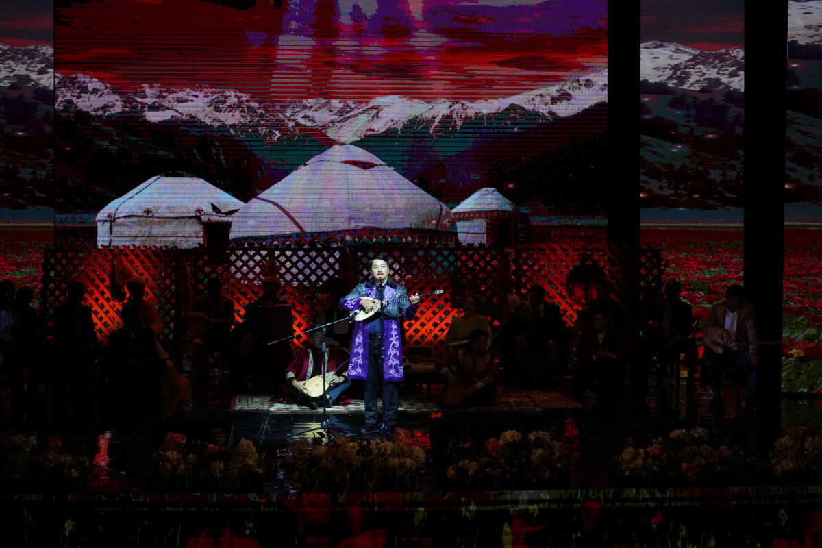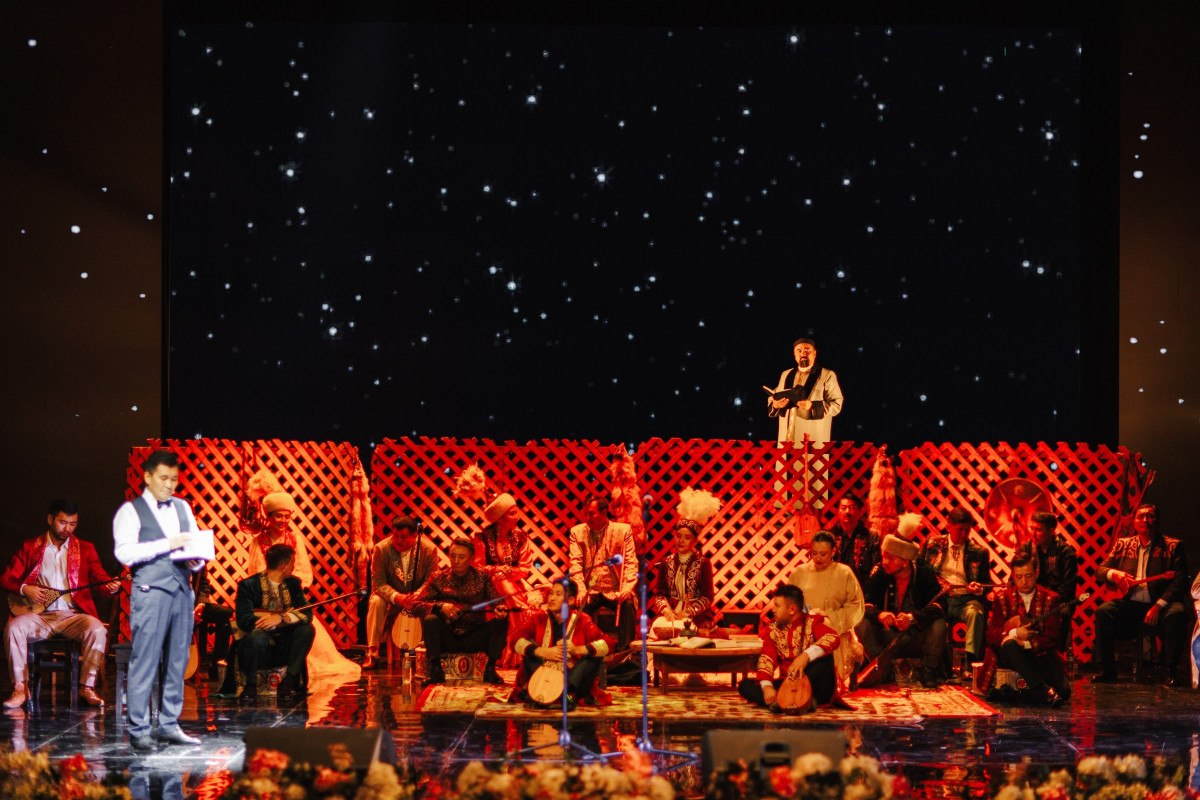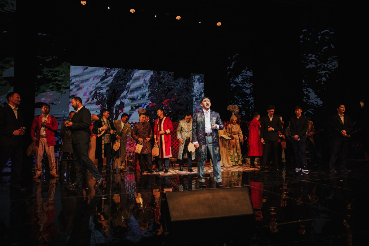 Алғашқы үннің сиқыры. Шымылдық ашылған сәтте сахнадан сыбызғының байырғы үні естілді. Даланың қоңыр лебі, өткеннің сыры сезілгендей болды. Артынша «Желсіз түнде жарық ай» әні шырқалып, зал бір сәтке тынышталып қалды. Ән аяқталар шақта сахнаға жан-жақтан әртістер шығып, бос тұрған кеңістік оюлы шапан киген адамдармен өрнектеліп, біртұтас көрініске айналды. Сол мезетте біз бұл кештің жай ғана концерт емес, шынайы рухани сапар екенін сезіндік.