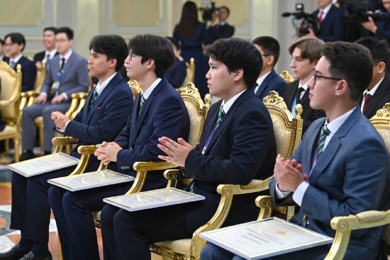 – Жастарымыз жаһандық спорт және өнер додаларында жеңімпаз атанып, Туымызды көкте желбіретіп жүр. Білім саласындағы беделіміз де артып келе жатыр. Былтырдан бері оқушыларымыз 30-дан астам халықаралық олимпиада мен ғылыми жарысқа қатысып, мыңға жуық медаль алды. Оның 200-ге жуығы – алтын, 300-ден астамы – күміс, ал 500-ге жуығы – қола медаль. Бұл тамаша көрсеткіш Қазақстандағы білім сапасының деңгейі жоғары екенін көрсетеді. Тағы да қайталап айтамын, біз әлемдік жарыста ел намысын қорғаған әр жеңімпазды мақтан тұтамыз. Сіздерді еліміздің беткеұстар, лайықты азаматтары деп санаймын. Болашақта да Қазақстанның одан әрі дамуына қомақты үлес қосатындарыңызға кәміл сенемін, – деді Президент.