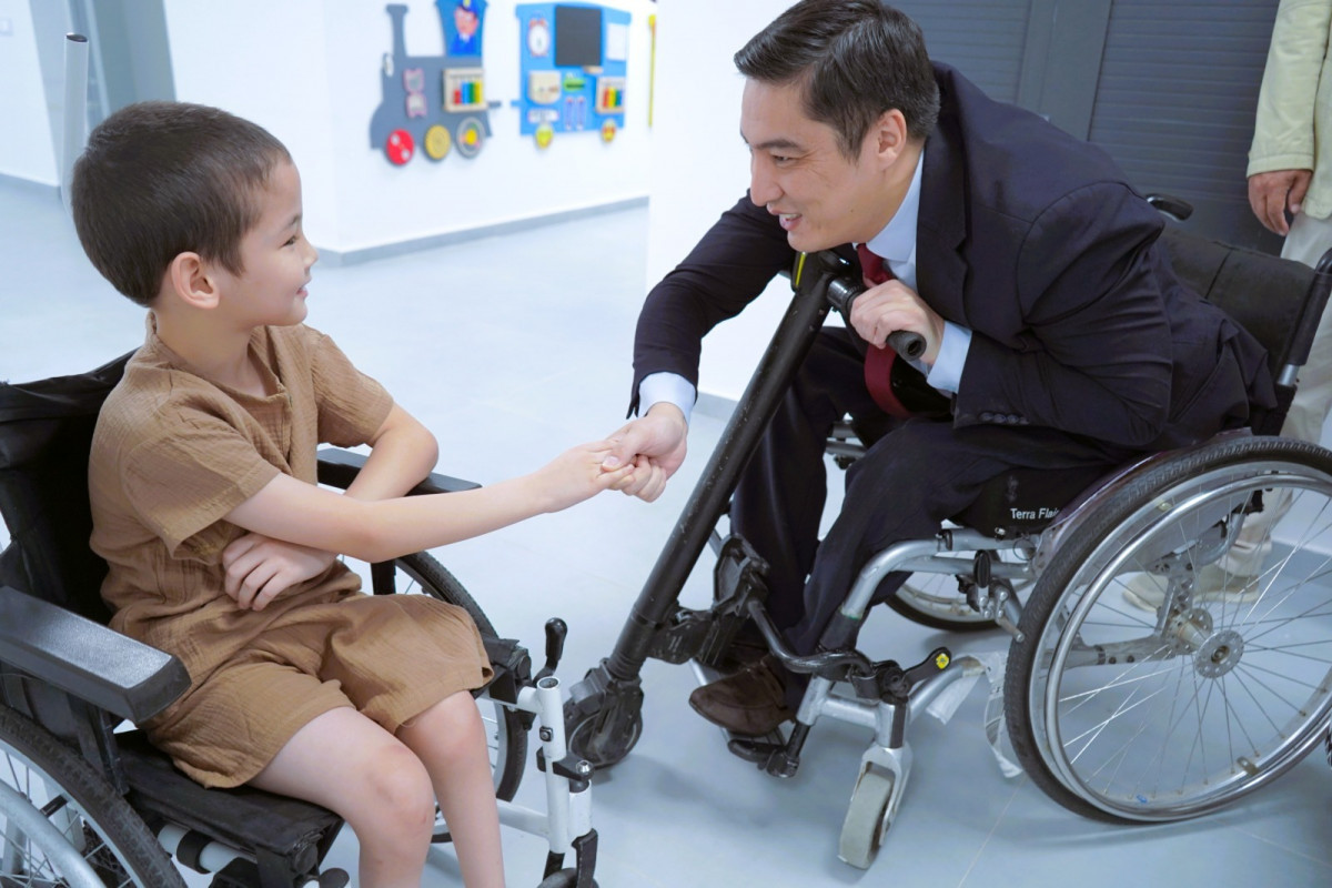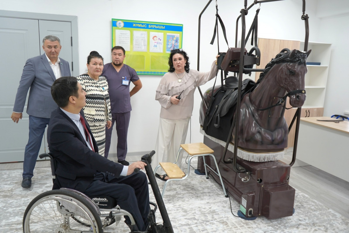 Ерлан Әбдиев ғимарат ішін аралап көріп, әлеуметтік-тұрмыстық ортаға бейімдеу, сурет салу, сенсорлық жабдықтар, компьютерлік сынып, кітапхана, емдік-дене шынықтыру, аквабөлме, Монтессори бөлмелері мен акт және спортзалдары, асхананың жабдықталу жағдайымен танысты. Мұнда иппотерапия әдісімен емдеуде Оңтүстік Кореядан механикалық ат жабдығы алынған. Электронды жабдық әр екі минут сайын түрлі жаттығу формаларына енеді. Жалпы, иппотерапияның 10 түрлі әдісі қолданылатын болады.