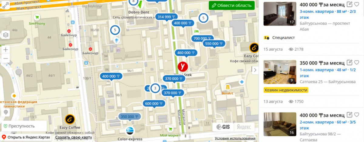 Krisha.kz жылжымайтын мүлік сату бөлімінің жетекшісі Имран Османовтың айтуынша, әсіресе Алматыда студенттер тарапынан сұраныс үнемі жоғары.