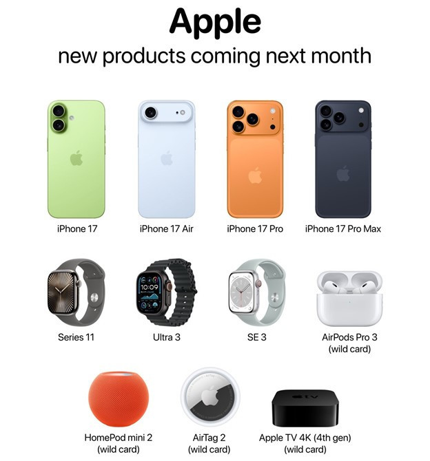 Awe Dropping презентациясында төрт жаңа iPhone 17 моделі, үш жаңа Apple Watch моделі және AirPods Pro құлаққаптарының үшінші буыны ұсынылады деп күтілуде.