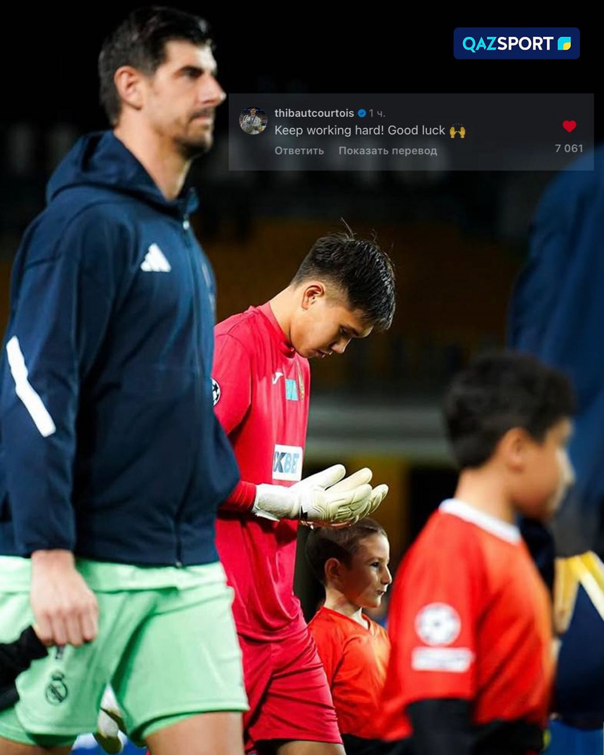 Тибо Куртуа жас қақпашының Instagram-дағы жазбасына «Ең бастысы еңбектене бер! Сәттілік тілеймін!» - деп пікір қалдырды.