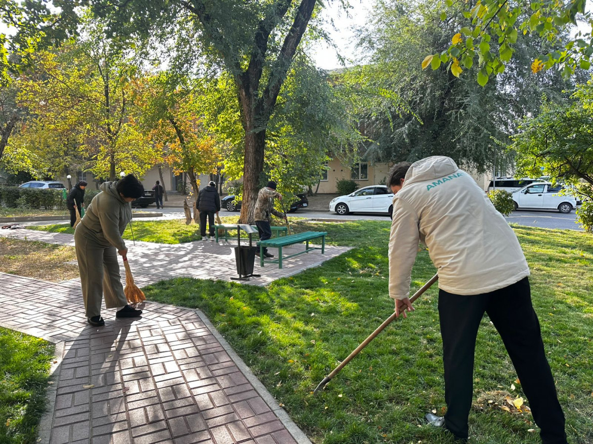 Жетісу облысы Ақсу ауданында партияластардың үндеуімен 60-қа жуық жергілікті тұрғын қолға күрек, тырма және қап алып, Жансүгіров ауылындағы саябақты тазалады.