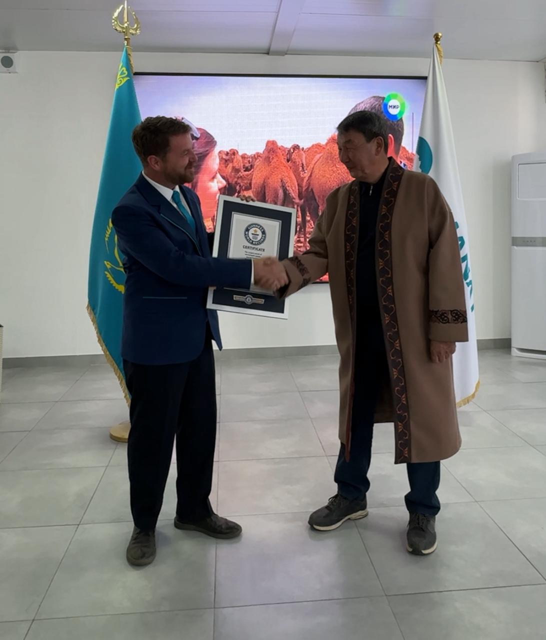 Әлемдік жетістік туралы сертификатты Гиннесс рекордтар кітабының ресми өкілі Ричард-Уильям Стэннинг табыстады. Керуеннің бастамашысы әрі иесі Сыдық Дәулетов жобаға дайындық шамамен жарты жылға созылғанын айтты.