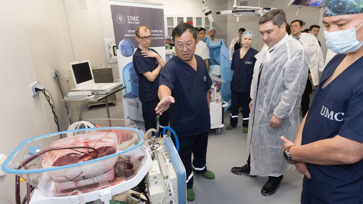 Мұнда Премьер-Министрдің назарына NU экожүйесінде дамып жатқан бірқатар ғылыми және технологиялық жоба ұсынылды. University Medical Center корпоративтік қорының басқарма төрағасы, доктор Юрий Пя донорлық органдарды адам ағзасына барынша ұқсас жағдайда консервациялауға және ұзақ мерзім тасымалдауға арналған инновациялық ALEM құрылғысын таныстырды. Аталған технологияны енгізу еліміздегі трансплантологияның тиімділігін едәуір арттырмақ.