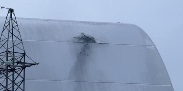 Киев Ресей дронының соққысынан 1,5 млрд еуро тұратын құрылыстың қаптамасы тесіліп, тығыз жабылу режимі бұзылған деген хабар таратты. Салдарынан капсуланың радиацияны ұстау қабілеті жойылған. Дрондар шабуылын Ресей мойындамаған, «украиналық биліктің Мюнхен конференциясы алдындағы арандатуы» деп мәлімдеген.
