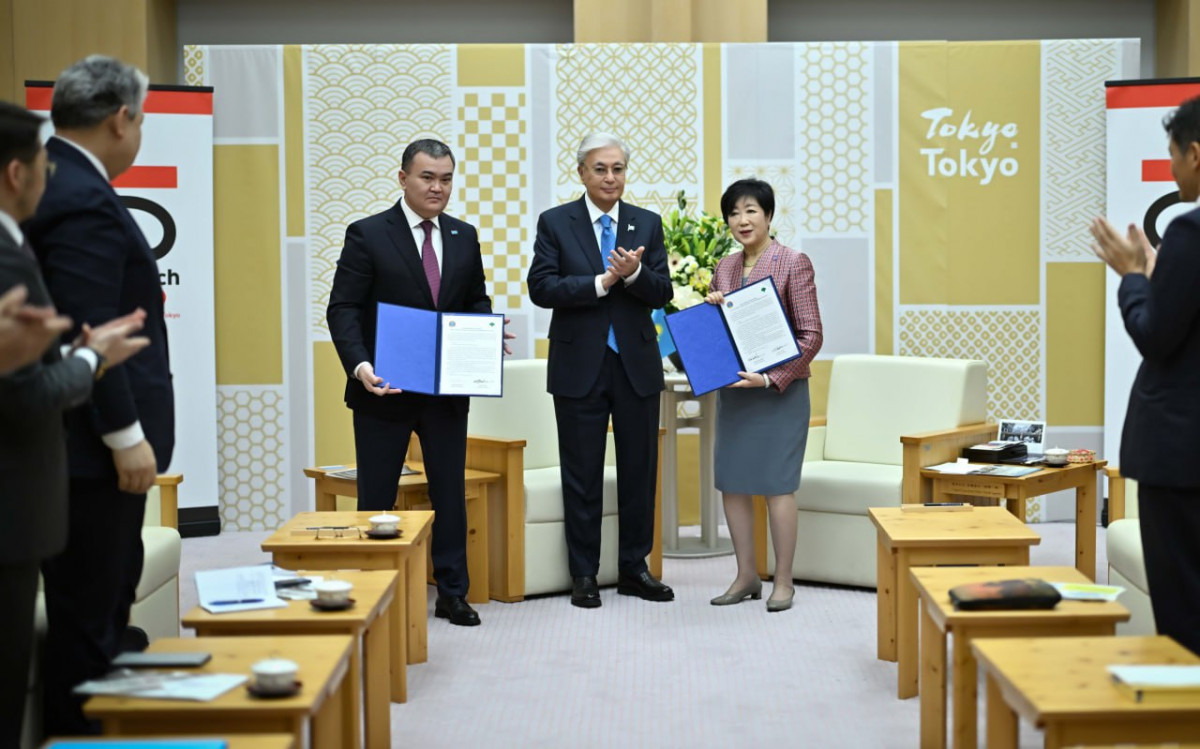 Президент Қасым-Жомарт Тоқаевтың қатысуымен Астана қаласының әкімі Жеңіс Қасымбек пен Токио губернаторы Юрико Коикэ Қазақстан және Жапония астаналары арасындағы өзара түсіністік туралы меморандумға қол қойды.