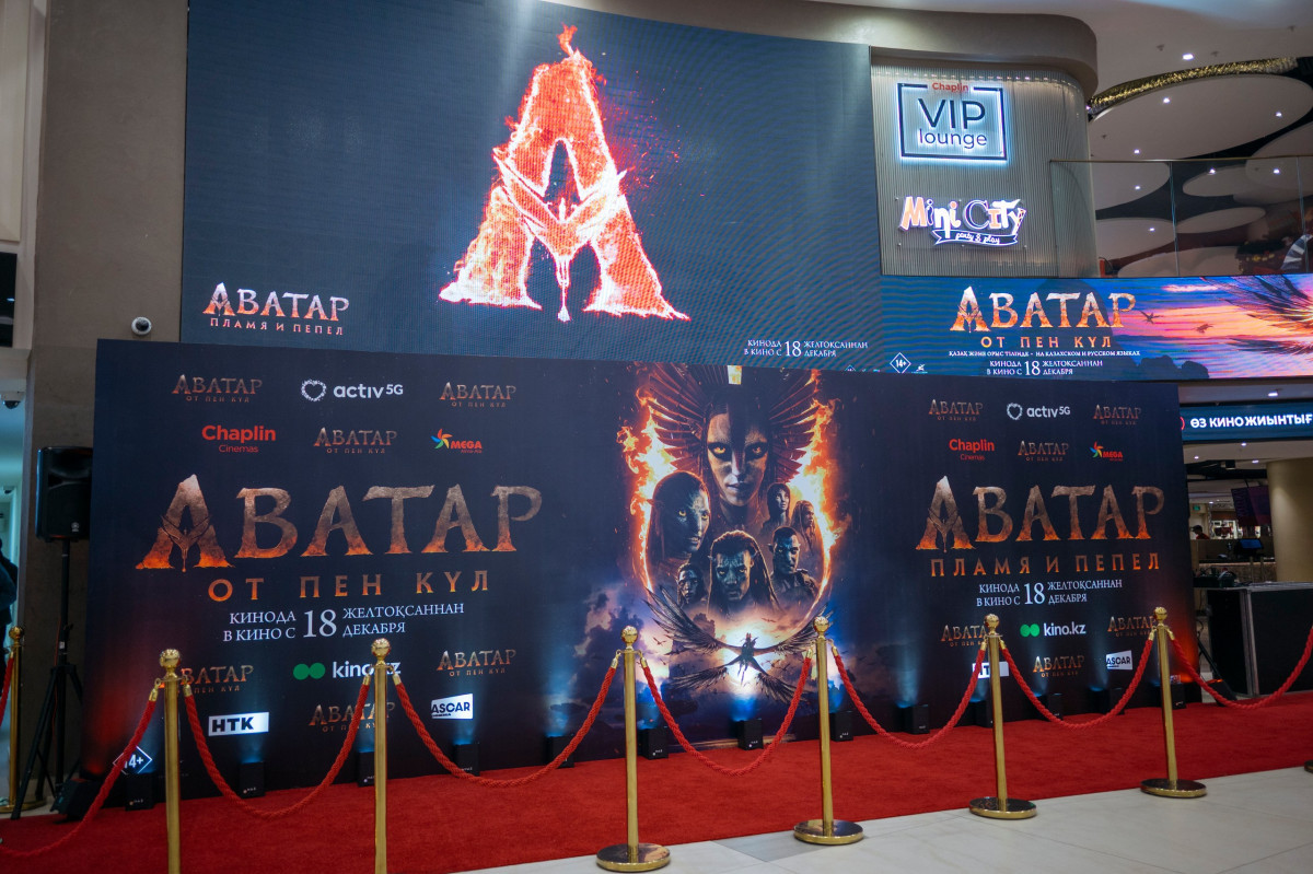 Осыған орай Алматыда «Аватар: От пен күл» фильмінің тұсаукесері өтті. Көрсетілімге елімізге танымал тұлғалар, қоғам қайраткерлері, кәсіпкерлер, фильмді дыбыстаған актерлік құрам мен шығармашылық ұжым өкілдері қатысты.