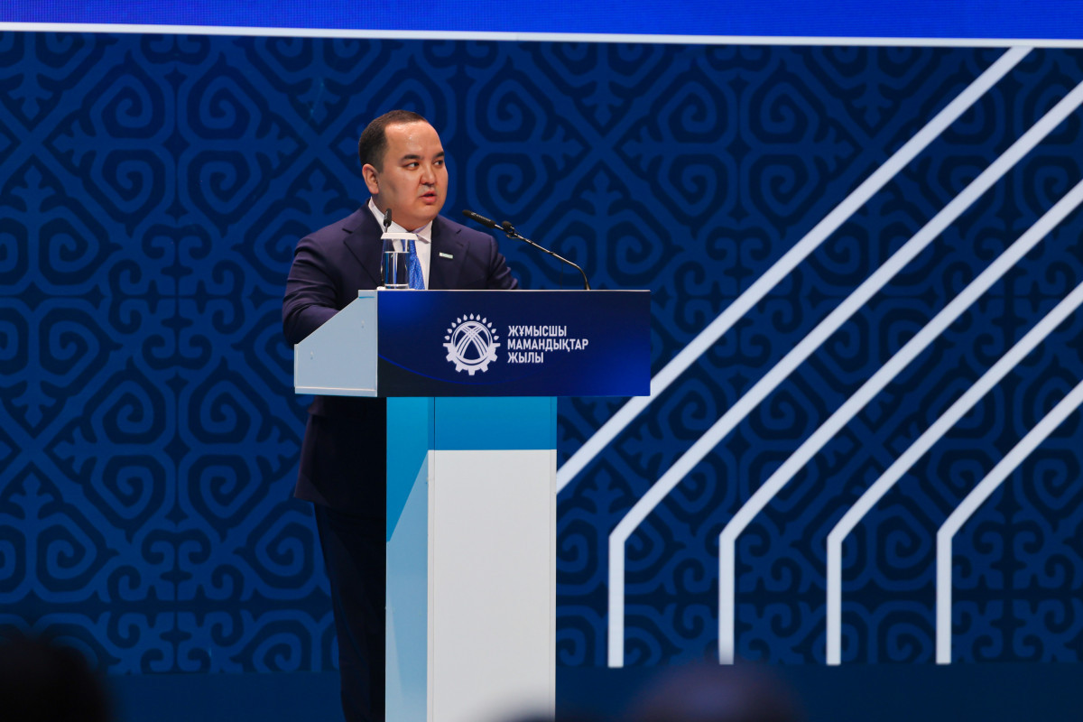 «Жыл бойы жұмысшы мамандардың беделін арттыруға, кадр даярлау жүйесін дамытуға, білім беру мен экономикалық сектордың арасындағы байланысты нығайтуға ерекше назар аударылды. Бүгінде ел экономикасында жұмыспен қамтылған 3,3 миллион адам жұмысшы мамандықтары бойынша еңбек етуде. Олар екі мыңға жуық түрлі техникалық кәсіптерді қамтып отыр. Ал еңбекпен қамтылған жастардың саны 1,2 миллионға жетті. Жұмысшы кәсіптердің ішінде кең танымал мамандар бар. Мәселен, 57 мың ауыл шаруашылығы өнімдерін шығаратын фермер, 25 мыңнан астам дәнекерлеуші, 16 мың автокөлік құралдарын жөндеуші және слесарь – бұл бір бөлігі ғана. Биыл 4 мыңға жуық кәсіпорын жас азаматтарға арналған ашық есік күндерін өткізді. Оған 113 мыңнан астам оқушы мен студент қатысты. Жастар кәсіби өсуіне және еңбекті құрметтеуге жол ашатын жұмысшы мамандықтарды белсенді түрде танып келеді», – деді ол.