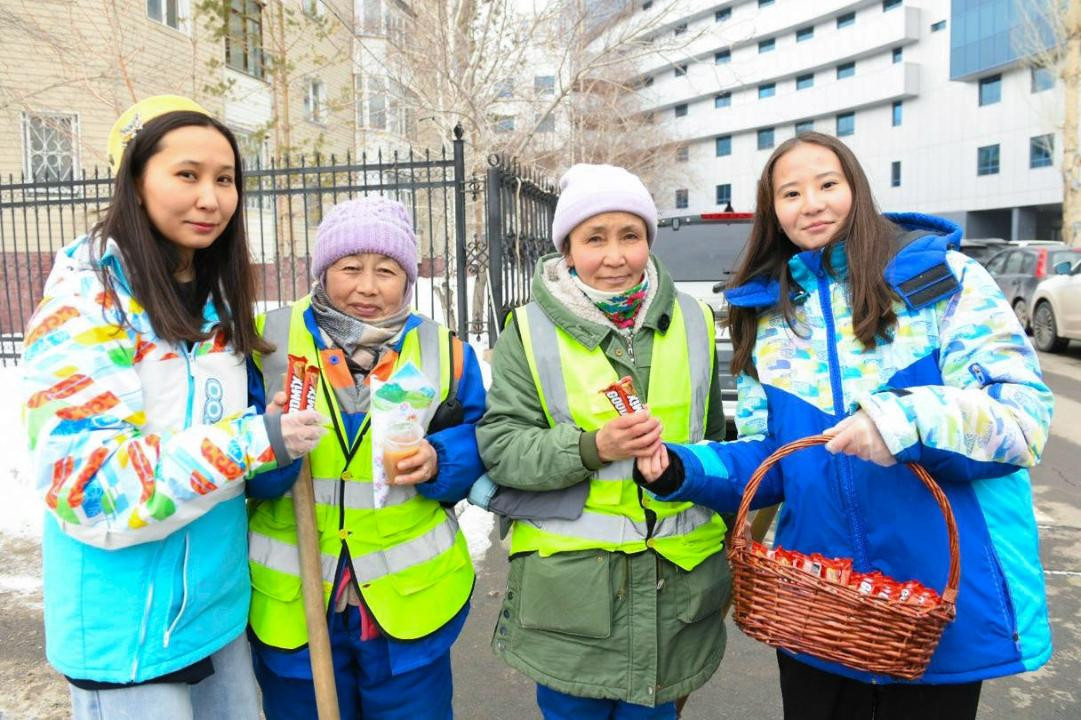 «Астана жастары» еріктілерімен бірге тіпті аз мүмкіндікпен де бір-бірімізге көмектесуге болатынын көрсеткіміз келді. Оқушылар коммуналдық қызметкерлерге арнап акция өткізу бастамасын көтерді. Олар ауа райының қолайсыздығына қарамастан қалада тәртіп пен тазалықты сақтайды», – деді Эльвира Есмұханова.