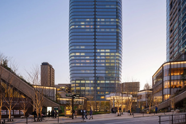 Mori JP Tower жобасын Pelli Clarke & Partners компаниясы жасаған және Heatherwick Studio ғимараттары мен тағы екі биік мұнара кіретін Azabudai Hills кешенінде орналасқан.