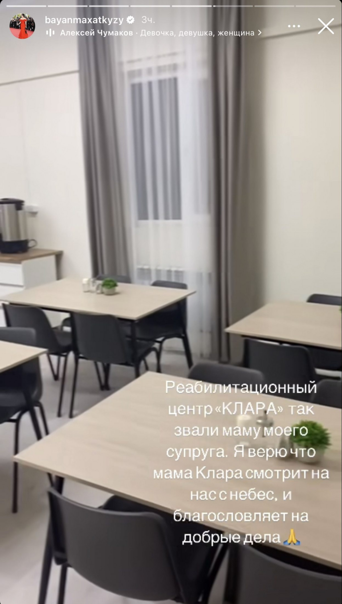 «Зорлық-зомбылыққа ұшыраған әйелдер мен балаларға арналған оңалту орталығын ашатынымды көптен бері айтып жүрмін. Орталық дайын. Жақында жұмысын бастайды. Қоғамның көзқарасын өзгертіп, әйелді қорлауға жол бермеу үшін барлық күш-жігерді жұмсау керек. Бұл бақытты отбасына арналған орталық болмақ. Орталық үлкен, жарқын, жайлы, жүзге жуық әйелді қабылдауға дайын. Бізде жетекші мамандар, яғни ең жақсы психологтар, заңгерлер, медицина қызметкерлері, тәрбиешілер, оқытушылар жұмыс істейді. Барлық әйелді қалай құтқаруға болады? Білмеймін, бұл мүмкін емес шығар. Бұл мәселеге қатысты қоғамның ойы мен көзқарасын өзгертуге болады. Зорлық-зомбылыққа жол жоқ», - деп жазды продюсер Instagram парақшасындағы Stories бөлімінде.