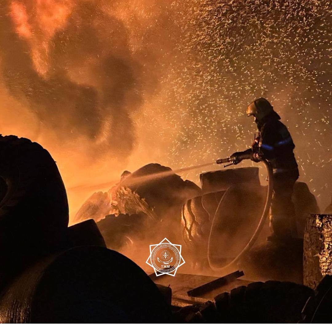 Астанада қоймадағы резеңке бұйымдар өртеніп жатыр.