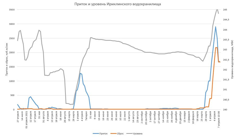 Ал Орск қаласының басшысы Василий Козупицаның хабарлауынша, 10 сәуірде таңертең Ириклин су қоймасынан жіберіліп жатқан су көлемі секундына 1342 текше метрді құраған. Яғни бұл кешегі күнмен салыстырғанда, 259 текше метрге қысқарғанын көрсетіп отыр.