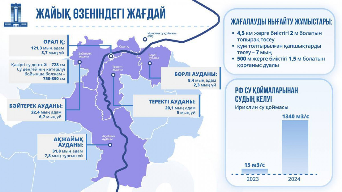 Орал қаласы тұсында Жайық деңгейі 7 метрден 28 см асты.