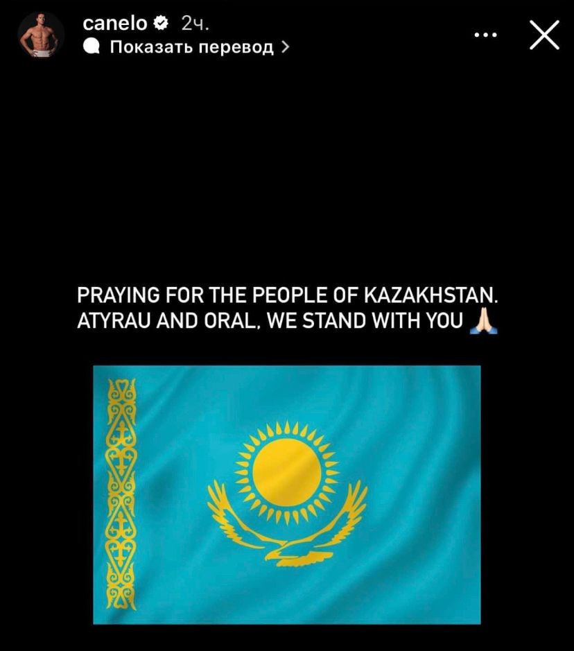 Мексикалық кәсіпқой боксшы, екінші орта салмақта абсолют чемпион Сауль Канело Альварес су тасқынына байланысты Қазақстанға қолдау білдірді, – деп хабарлайды Aikyn.kz.