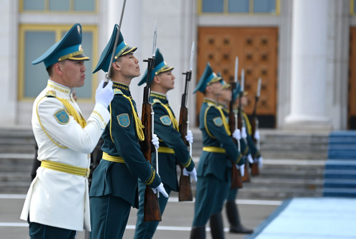 Мәртебелі қонақты салтанатпен қарсы алу үшін Құрмет қарауылы сап түзеп тұрды.