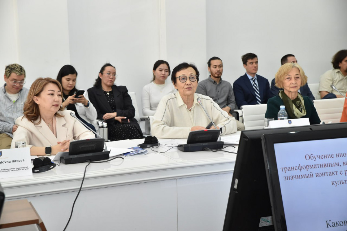 ҚазҰУ профессоры Элеонора Сүлейменова «Флагман» бағдарламасының тәжірибесі: Қазақстанның мультимәдениетті және мультилингвалды ортасында тілдерді оқыту» туралы баяндама жасады.