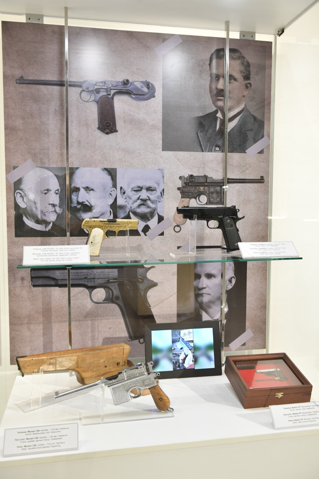Экспозиция Лефоше, Кольт, Браунинг, Федерле, Стечкин және басқалар сияқты көрнекті қару-жарақ құрастырушылардың туындыларымен танысуға мүмкіндік береді. Еуропа, АҚШ, Ресей және Түркиядағы жаһандық қару өндірушілердің тапаншалары мен револьверлері көрсетіледі. Экспонаттар арасында антикварлық үлгілер бар – бундель револьвері, Лефоше револьвері және дуэльдік тапаншалар.