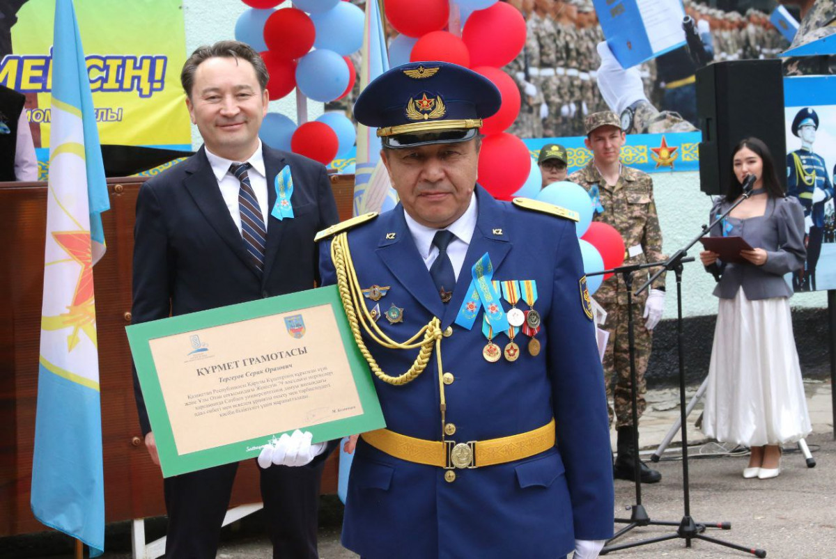 Салтанатты іс-шарада Сәтбаев университетінің және Әскери іс институтының студенті Алмасбек Әбдіжәми Атырау қаласындағы су тасқынының салдарын жою шараларына белсене қатысқаны үшін және Отан қорғаушылар күніне орай Ғылыми кеңестің шешімімен Сәтбаев университетінің Алтын медалімен марапатталды.