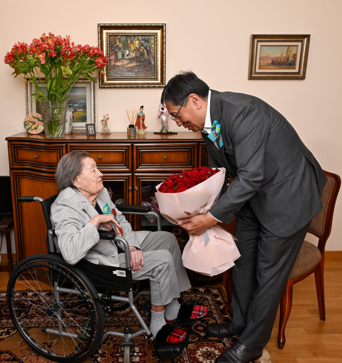 Алматы әкімі Ерболат Досаев 9 мамыр мерекесі қарсаңында Ұлы Отан соғысының ардагерлеріне барып, Мемлекет басшысы Қасым-Жомарт Тоқаевтың атынан құттықтады.