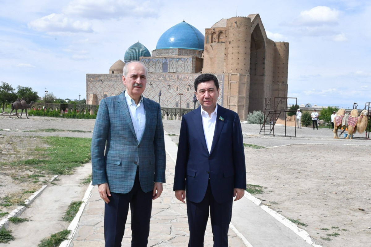 Қазақстан Парламенті Мәжілісінің Төрағасы Ерлан Қошанов пен Түркия Ұлы ұлттық Мәжілісінің спикері Нуман Куртулмуш түркі әлемінің рухани астанасы – Түркістан қаласына барды.