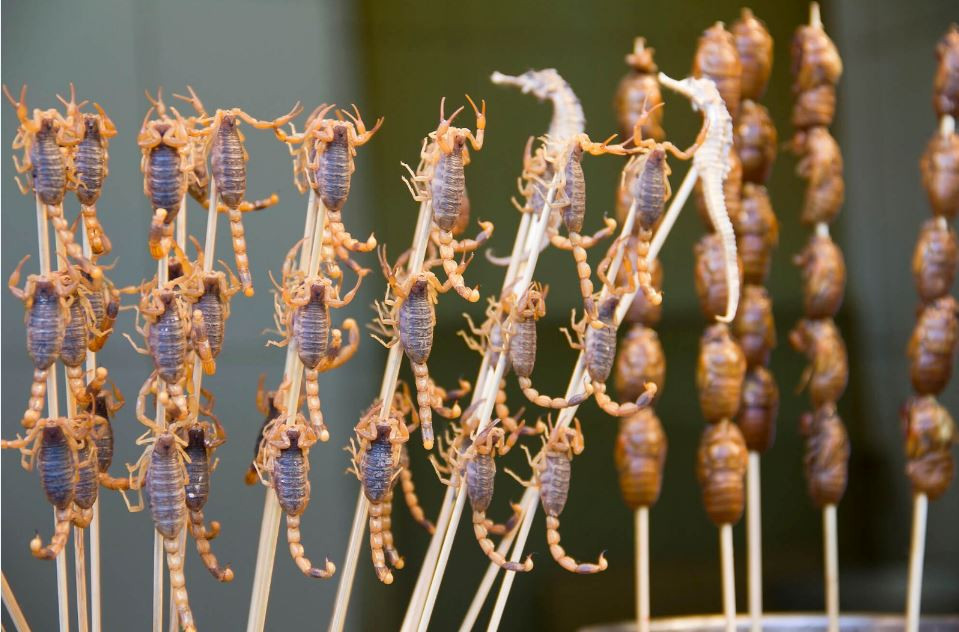 Тамақ демекші, Қытайға барған туристер жауабын білуге ұмтылатын сұрақтың бірі – «Олар шынымен сарышаянмен қоректене ме?». Қытайлардың күнделікті асы– қоңыз, жылан мен бақа-шаян дейтін аңыздар ешқандай да ақиқат болмай шықты. Оларды мұнда мейрамханалар мен түнгі базарларда көбіне деликатес түрінде ұсынады. Жеуге арналған жәндіктерді – жібек құрты, шегіртке, сарышаян, бамбук құрттары, қырықаяқтарды арнайы фермаларда өсіреді.