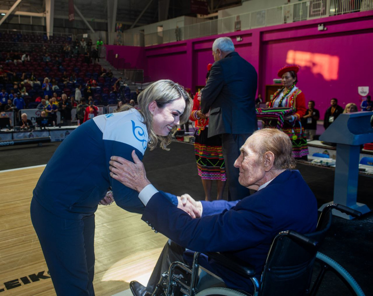 Ұлттық олимпиадалық комитеттен мәлім еткендей, марапат Лимада (Перу) өтіп жатқан ауыр атлетикадан жасөспірімдер арасындағы әлем чемпионатында салтанатты түрде табысталды. Спортшы медальді Перуде Халықаралық Олимпиада комитетінің құрметті мүшесі Иван Дибостың қолынан алды.