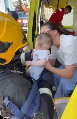 Өрт кезінде үш айлық бала құтқарылды. Сәбиді өрт сөндіруші Айдын Бимұханов алып шықты.