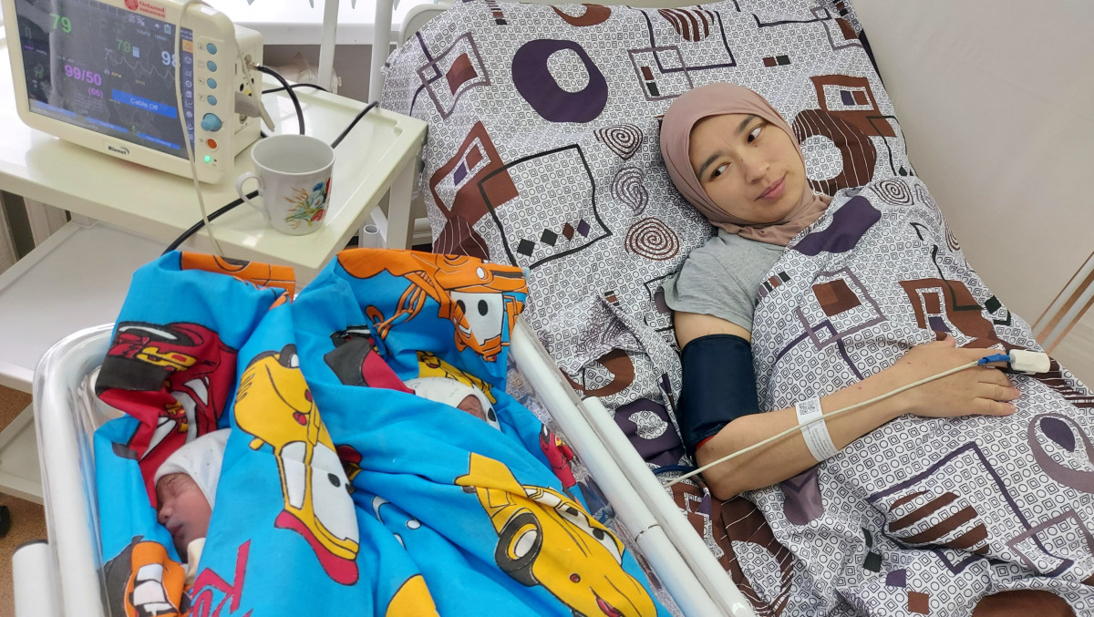 Қазіргі уақытта анестезиядан кейін енді ғана есін жиған үшемнің анасы сәбилерін бауырына алған.