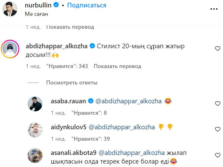 Алайда әншінің әрекеті ғана емес, оның әріптестері жазған әзіл де көпшілікке ұнамады. Әсіресе Әбдіжаппар Әлқожаның орынсыз әзілі сынға қалған.
