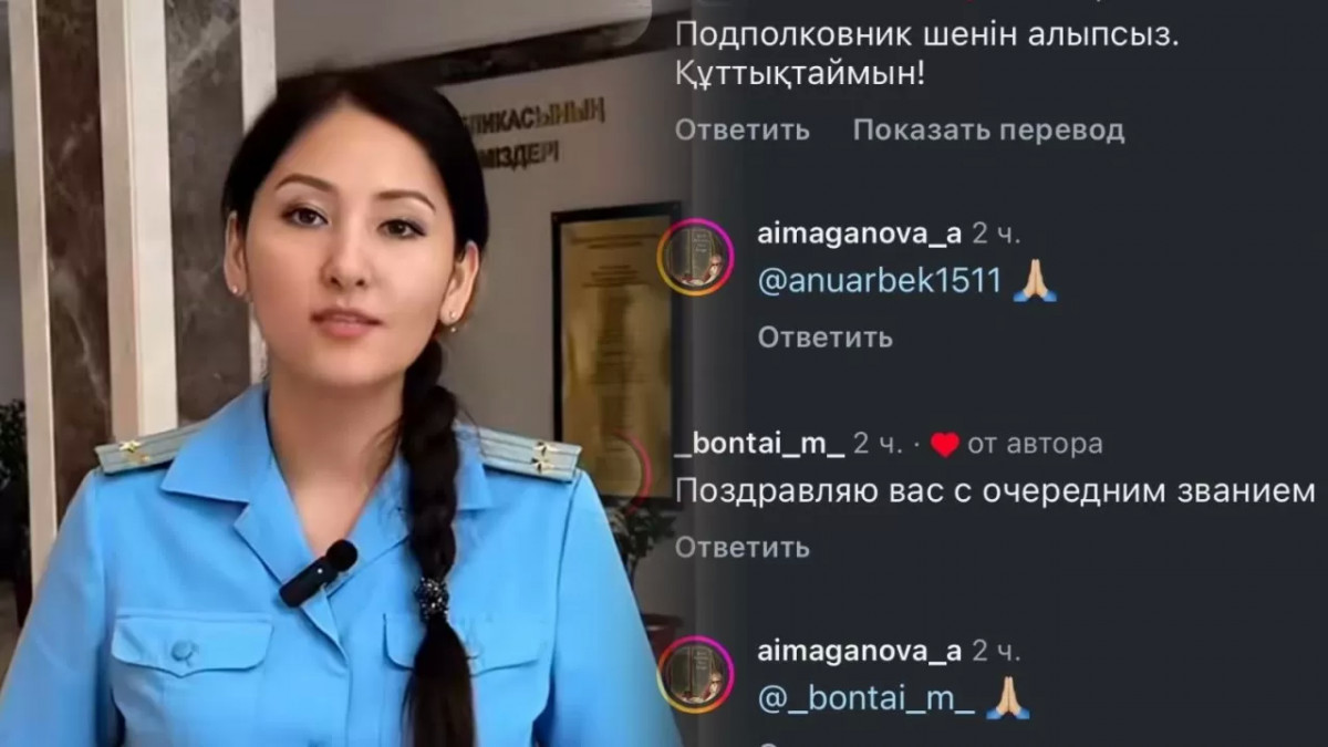 Онда ол подполковник шенін тағып, бейнежазба жариялаған. Желідегілер Аймағанованы құттықтап, тілегін жазып жатыр.
