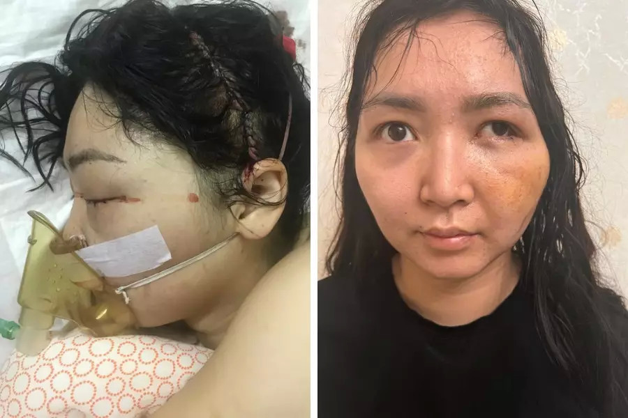 "Мен есімді жия алмай жатқан уақытта жедел жәрдем мен полиция қызметкерінен бұрын күйеуімнің отбасы келеді. Бірі есімде қалса, бірі есімде жоқ, өйткені мен көзімді бір ашып, бір жұмып жаттым. Анасы есіктен кірде де "мұның не, ақымақ? Менің ұлымды түрмеге отырғызғың келе ме? Егер сен қазір өліп қалсаң, ол сотталады ғой, ақымақ!" деді. Енем мен қайын інім мені көтеріп, ваннаға апарып жатқызды да, салқын сумен бет-аузымдағы қанның бәрін жуды. Үстімнен қан-қан барлық киімді шешіп, ақ халат кигізіп, төсекке жатқызды. Әсет пен әкесі балаларды алып кетті. Бір уақытта бұрынғы енем күйеуіне "Айдар, тезірек кілемді жинап ал" деп айғайлады. Олар осылай үйдегі бар айғақтың көзін жоюға тырысты. Жедел жәрдем мен полиция қызметкерлері келген кезде олар есікті ашпай ұзақ жүрді. Құзырлы органдар шыдай алмай, дауыс көтерді. Жедел жәрдем қызметкерлері менің халімді көріп шок болды, ал мен есімнен танып жатырмын. Күйеуімнің анасы оларға "мен де дәрігермін, оны ешқайда апарудың қажеті жоқ, өзім емдеймін" деп айтты. Ал олар "жоқ, жылдам басын тігу керек, басынан әлі де қан кетіп жатыр, әйтпесе ол өліп кетуі мүмкін" деп бас тартты. Мені жедел жәрдеммен Астанадағы №1 қалалық ауруханаға апарды, тексеру арқылы көптеген сынық анықтады. Соққылардың салдарынан сол бетімнің сүйегі толық сынып, майдаланып кеткен. Сүйектің майдаланғаны соншалық бас сүйегім сынып, сол көзім ішіне қарай кіріп кеткен. Сондай-ақ бас сүйегім сынған", – деді ол.