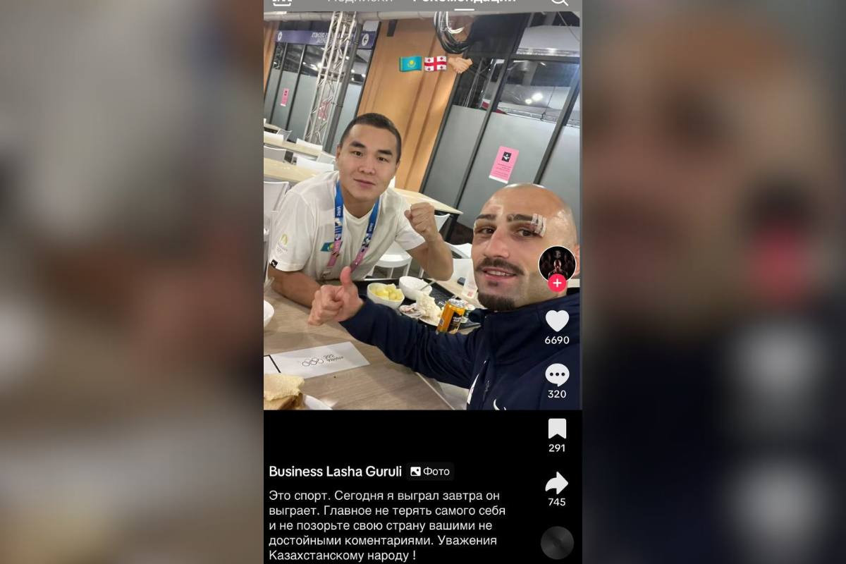 Париж Олимпиадасында қазақ боксшысы Мұхамедсабыр Базарбайұлын жеңген грузин Лаша Гурули қарсыласымен бірге ас ішіп отырған фотосуретін көпшілікке көрсетті, – деп жазды Aikyn.kz 1bol.kz-ке сілтеме жасап.