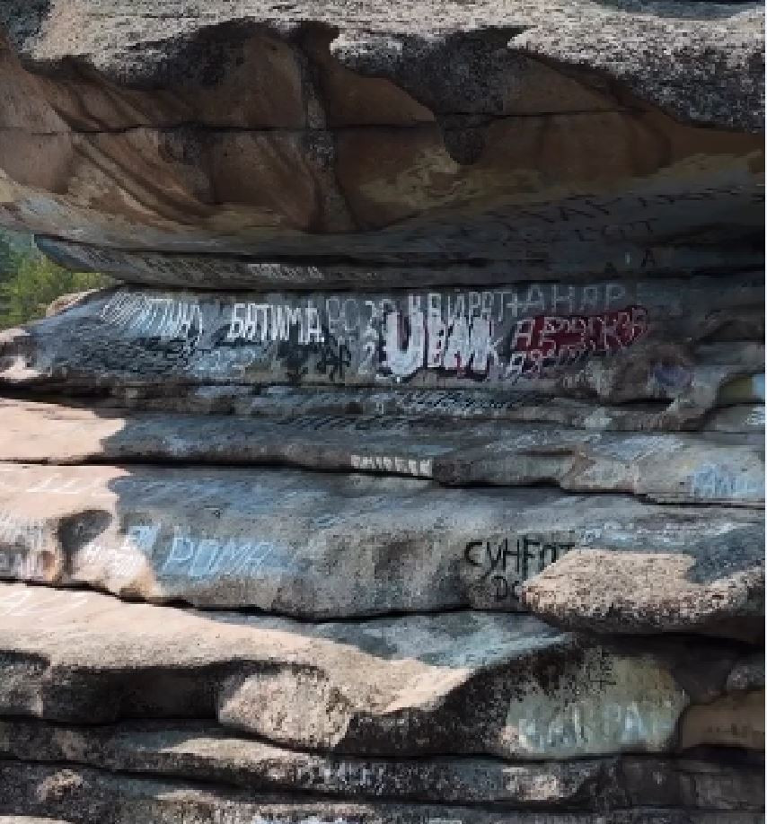 Демала барып Бурабай мен Баянауылдағы көріністерді өз көзімізбен көргенде адамдардың кейбір әрекетіне налисың. Жуықта ғана өшірілген жазуы бар жерге қайта өрмелеп барып өз аттарын таңбалағандардың ісіне не айтарымызды да білмедік. Тіпті, кейбір жердегі биік жартасқа арнайы техниканың көмегімен шықпасаң онда өрмелеу мүмкін емес құсайды. Бірақ вандалдар сондай қиын әрі экстремалды орындарға шың бағындырғандай кейіпте шығып, өз есімдерін таңбалап кетеді. Мұнда қандай мақсат, қандай ләззат барын біз түсіне алмадық.