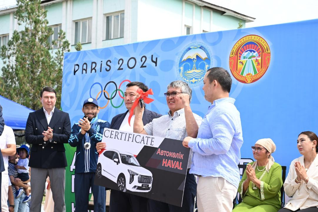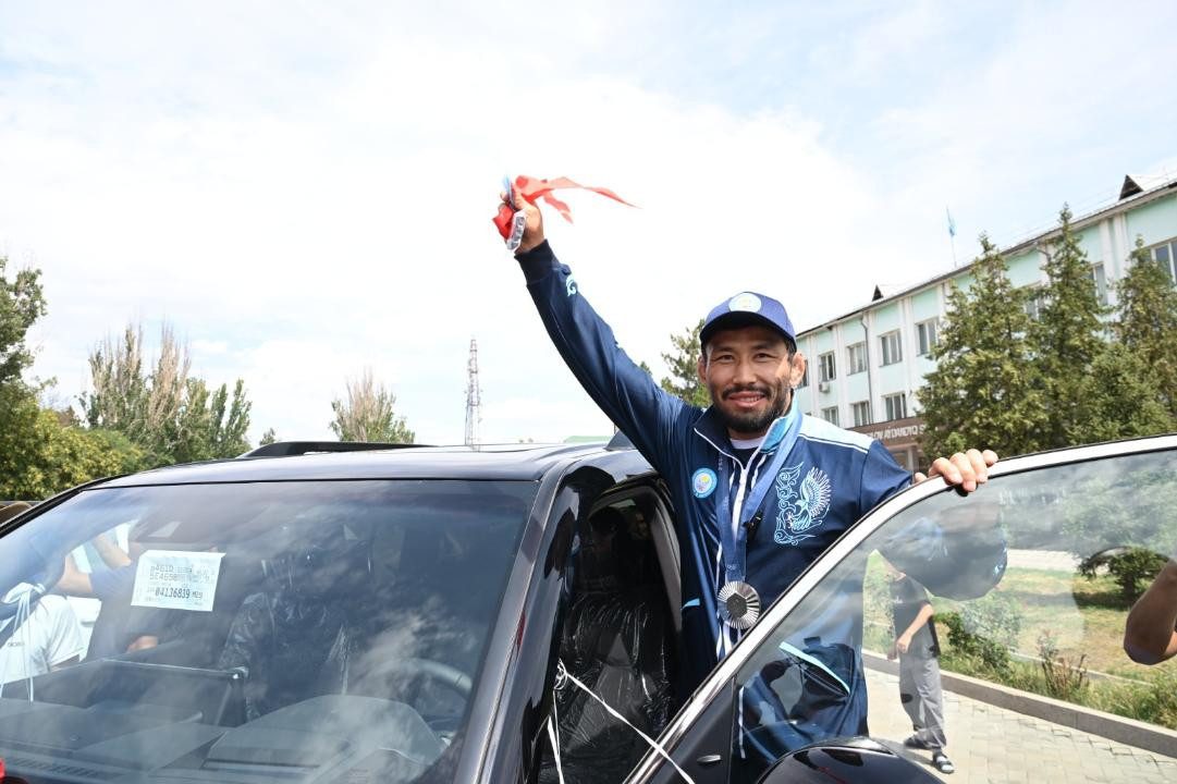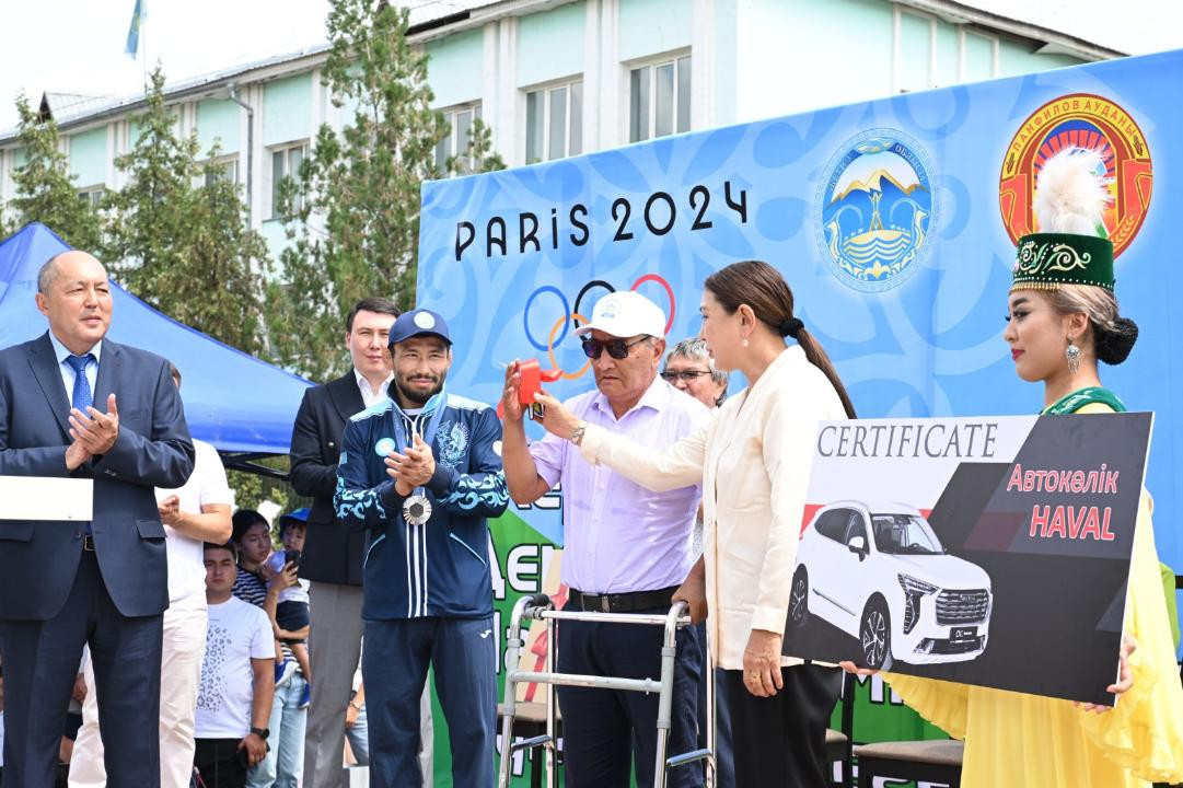 Франциядан елге оралған бетте туған жеріне арнайы атбасын тіреген даңқты палуан Жаркент қаласының орталық алаңында халықтың ыстық ықыласына бөленді. Кездесуге мыңнан астам халық жиналды. Спортшыны қарсы алуға Жетісу облысы әкімінің орынбасары Диас Есдәулетов, аудан әкімі Марат Сағымбек, 2008 жылғы Бейжің Олимпиадасының күміс жүлдегері, палуан Нұрбақыт Теңізбаев, ардагерлер, жастар, жалпы аудан тұрғындары келді.